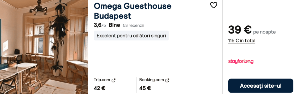 CAZARE 1: Omega Guesthouse, Preț cameră dublă 115€, Preț persoană 58€, 20-23 Iul 2025 (3 nopți)