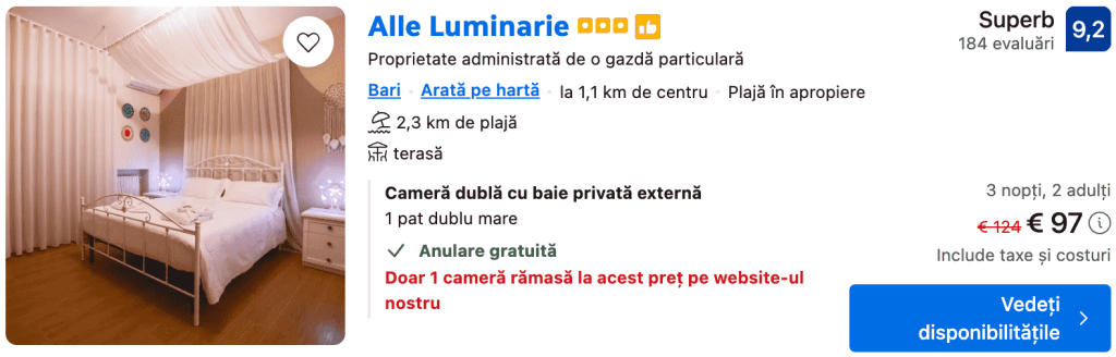 CAZARE 2: Barirooms Carulli Suites, Preț cameră dublă 148€, Preț persoană 74€, 30 Ian-2 Feb 2026 (3 nopți)