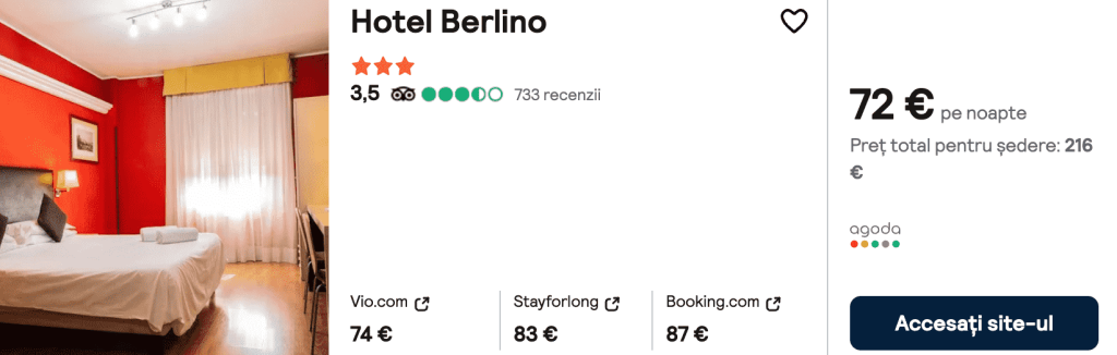 CAZARE 2: Hotel Berlino, Preț cameră dublă 216€, Preț persoană 108€, 8-11 Dec 2024 (3 nopți)