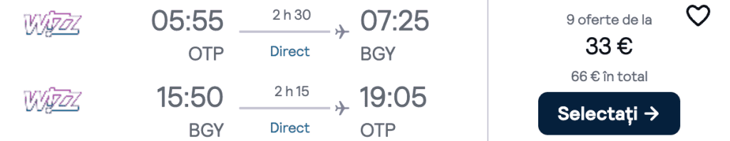 ZBOR: București -> Milano, Preț dus-întors 33€/pers, 8-11 Dec 2024
