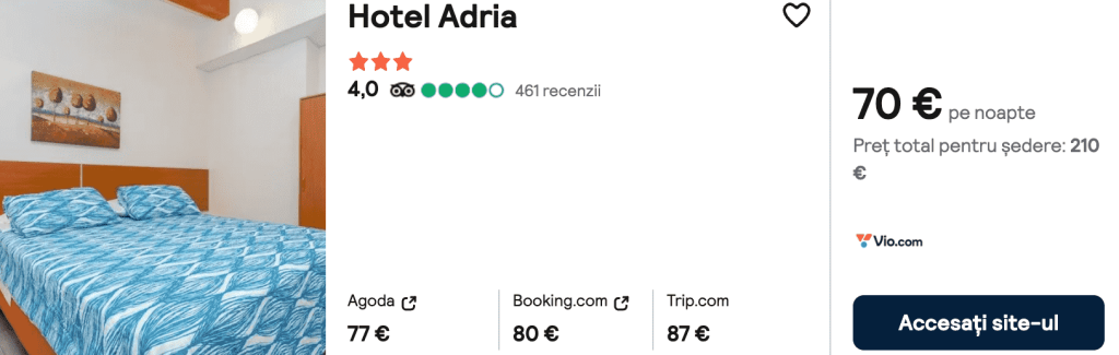 CAZARE 2: Hotel Adria, Preț cameră dublă 210€, Preț persoană 105€, 13-16 Oct 2024 (3 nopți)