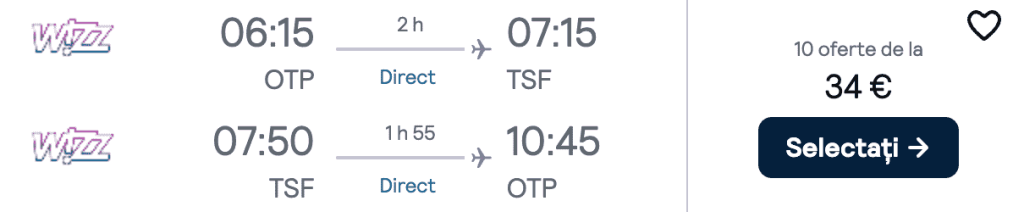 ZBOR: București -> Venetia, Preț dus-întors 34€/pers, 13-16 Oct 2024