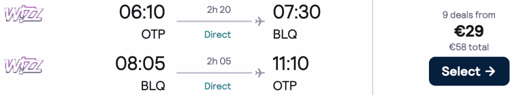 ZBOR: București -> Bologna, Preț dus-întors 29€/pers, 1-4 Mar 2026