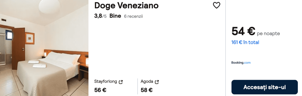 CAZARE 1: Doge Veneziano, Preț cameră dublă 161€, Preț persoană 81€, 9-12 Iun 2025 (3 nopți)