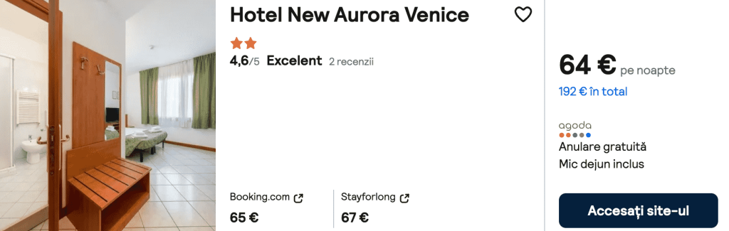 CAZARE 3 (+ Mic Dejun): Hotel New Aurora, Preț cameră dublă 192€, Preț persoană 96€, 9-12 Iun 2025 (3 nopți)