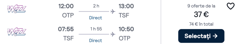 ZBOR: București -> Veneția, Preț dus-întors 37€/pers, 9-12 Iun 2025
