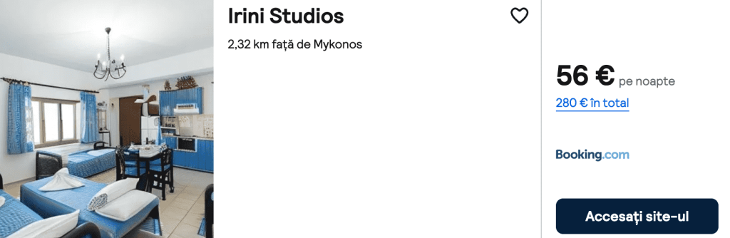 CAZARE 1: Irini Studios, Preț cameră dublă 280€, Preț persoană 140€, 21-26 Sep 2025 (5 nopți)