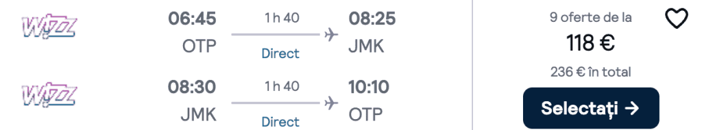 ZBOR: București -> Mykonos, Preț dus-întors 118€/pers, 21-26 Sep 2025