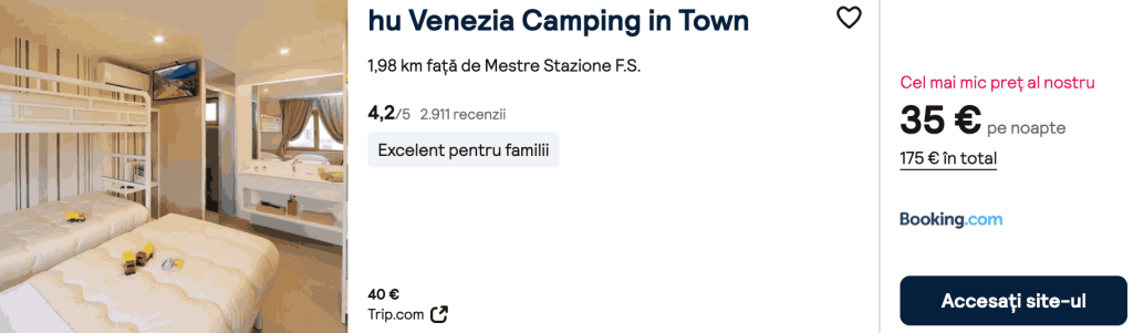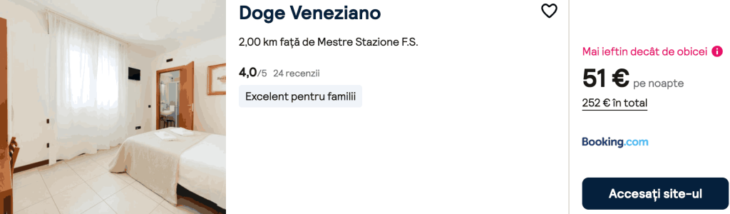 CAZARE 1: hu Venezia In Town, Preț cameră dublă 175€, Preț persoană 87€, 19-24 Mar 2026 (5 nopți)