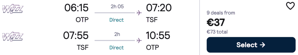 ZBOR: București -> Veneția, Preț dus-întors 37€/pers, 19-24 Mar 2026