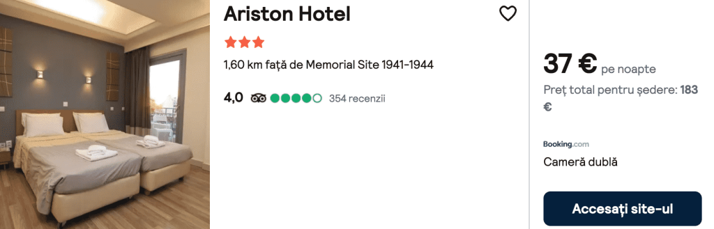 CAZARE 2: Ariston Hotel, Preț cameră dublă 183€, Preț persoană 92€, 23-28 Mar 2025 (5 nopți)