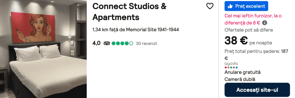 CAZARE 3: Connect Studios&Apartments, Preț cameră dublă 187€, Preț persoană 94€, 23-28 Mar 2025 (5 nopți)