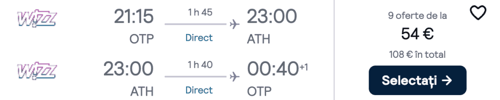 ZBOR: București -> Atena, Preț dus-întors 54€/pers, 23-28 Mar 2025