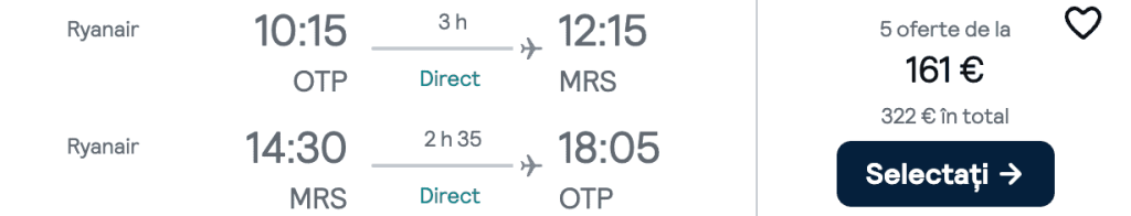 ZBOR: București -> Marsilia, Preț dus-întors 161€/pers, 27 Dec-1 Ian 2025