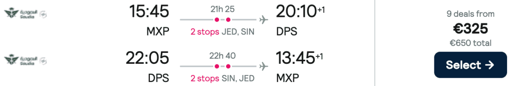 ZBOR: Milano -> Bali, Preț dus-întors 325€/pers, 10-25 Feb 2026