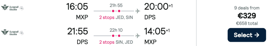 ZBOR: Milano -> Bali, Preț dus-întors 329€/pers, 5-20 Mai 2026