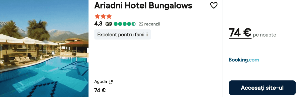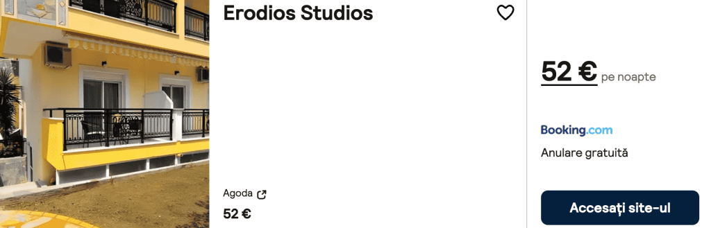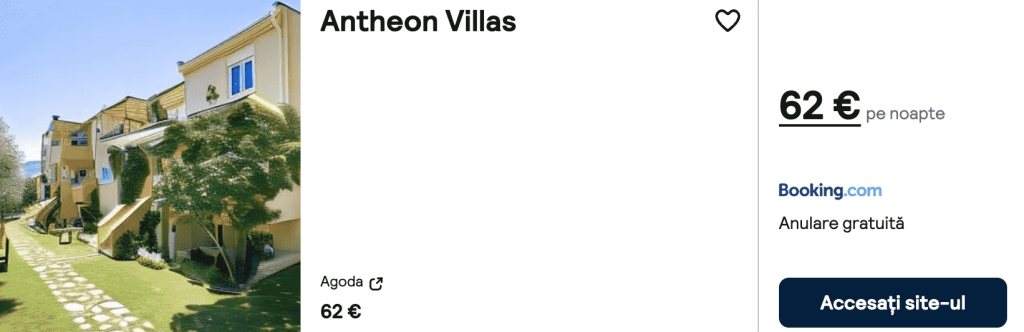 Aici totul e la superlativ, camera e dotată cu tot ce ai nevoie, curățenie zilnică. Șezlongurile și umbrelele de pe plajă aparțin vilei. Proprietarii îți vor da măsline și înghețată cadou 🙂