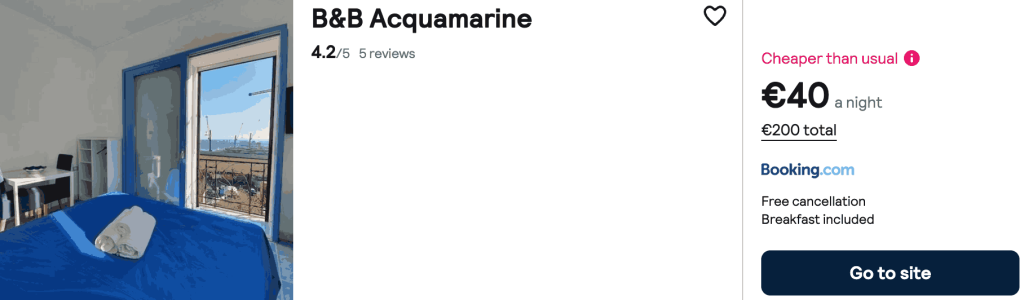 CAZARE 1 (SALERNO): B&B Acquamarine, Preț cameră dublă 200€, Preț persoană 100€, 28 Mar-2 Apr 2026 (5 nopți)