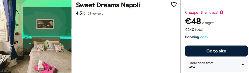 CAZARE 3 (NAPOLI): Sweet Dreams Napoli, Preț cameră dublă 240€, Preț persoană 120€, 28 Mar-2 Apr 2026 (5 nopți)