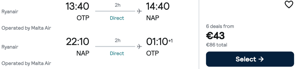 ZBOR: București -> Napoli, Preț dus-întors 43€/pers, 28 Mar-2 Apr 2026