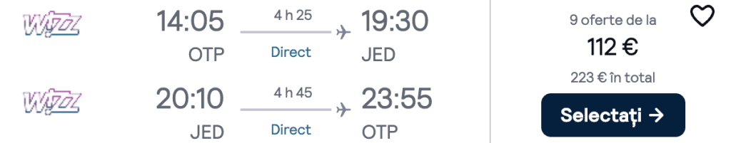 ZBOR: București -> Jeddah, Preț dus-întors 112€/pers, 15-22 Mar 2025
