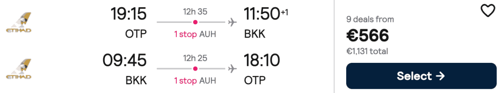 ZBOR 1 (DUS-ÎNTORS): București -> Bangkok, Preț dus-întors 566€/pers, 28 Sep-12 Oct 2026