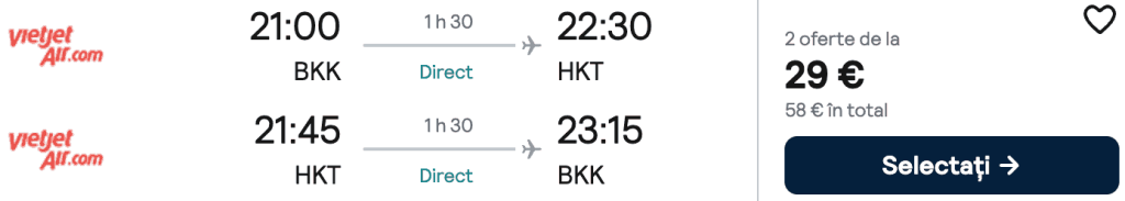 ZBOR 2 (DUS-ÎNTORS): Bangkok -> Phuket, Preț dus-întors 29€/pers, 3-10 Oct 2026
