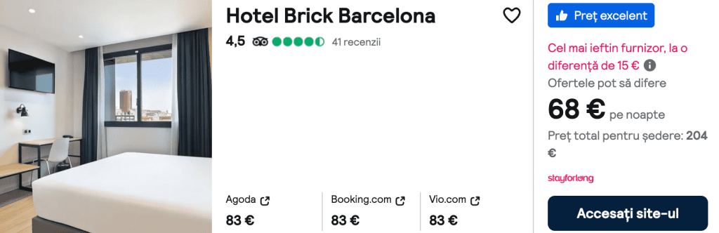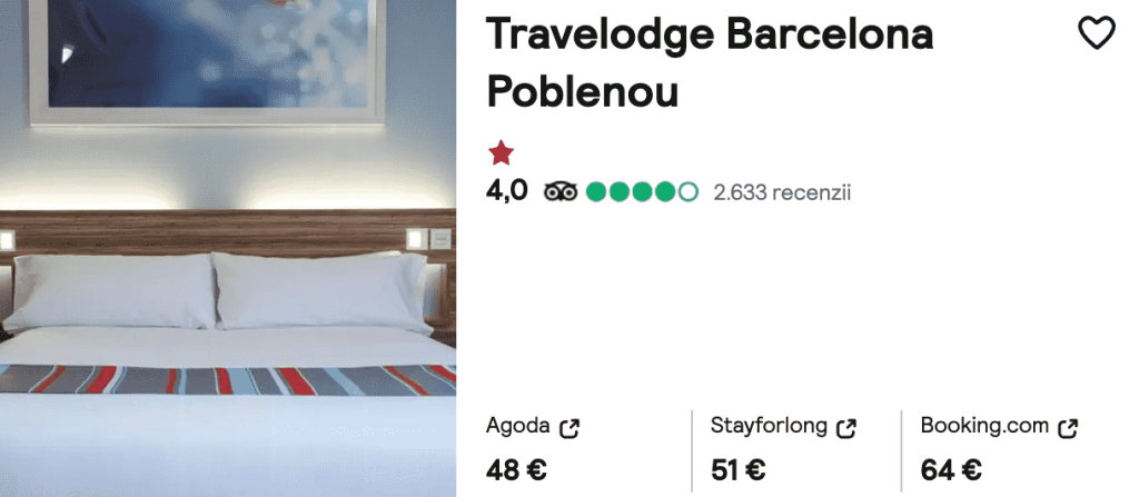 CAZARE 1: Travelodge Poblenou, Preț cameră dublă 144€, Preț persoană 72€, 26-29 Ian 2025 (3 nopți)