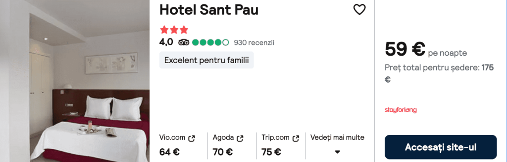 CAZARE 2: Hotel Sant Pau, Preț cameră dublă 175€, Preț persoană 88€, 26-29 Ian 2025 (3 nopți)