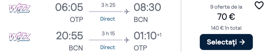 ZBOR: București -> Barcelona, Preț dus-întors 70€/pers, 26-29 Ian 2025