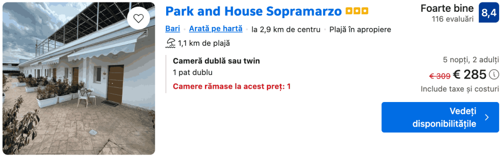 CAZARE 1: Park and House Sopramarzo, Preț cameră dublă 285€, Preț persoană 143€, 6-11 Iun 2026 (5 nopți)
