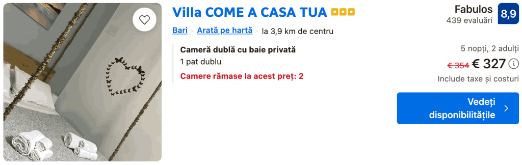 CAZARE 2: Villa Come A Casa Tua, Preț cameră dublă 327€, Preț persoană 163€, 6-11 Iun 2026 (5 nopți)