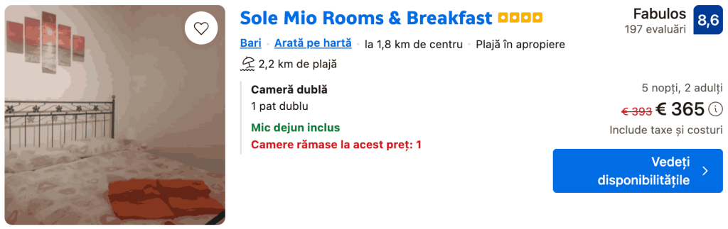 Rezervă din timp altfel vei plăti de 3 ori mai mult! Hai în BARI și ALBEROBELLO cu doar 192€ pentru zbor dus-întors și cazare 5 nopți.