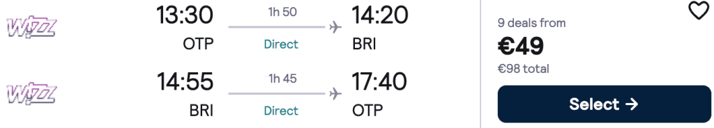 ZBOR: București -> Bari, Preț dus-întors 49€/pers, 6-11 Iun 2026