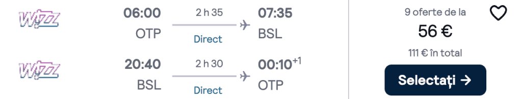 ZBOR: București -> Basel, Preț dus-întors 56€/pers, 20-24 mai 2025