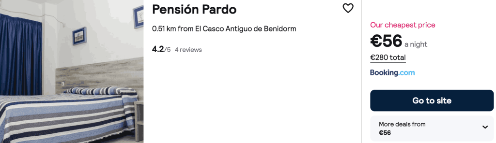 CAZARE 1: Pension Pardo, Preț cameră dublă 280€, Preț persoană 140€, 10-15 Mai 2026 (5 nopți)