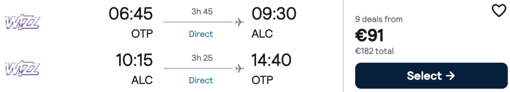 ZBOR: București -> Alicante, Preț dus-întors 91€/pers, 10-15 Mai 2026