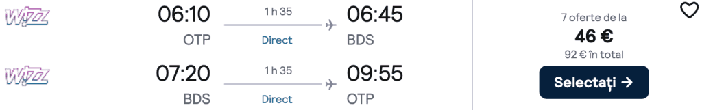 ZBOR: București -> Brindisi, Preț dus-întors 46€/pers, 5-9 Nov 2025