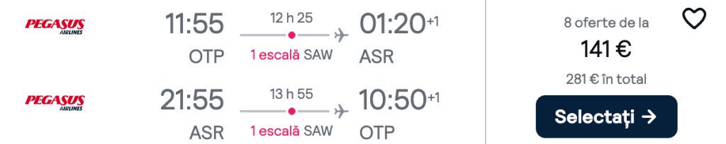 ZBOR: București -> Kayseri, Preț dus-întors 143€/pers, 5-11 Mar 2025