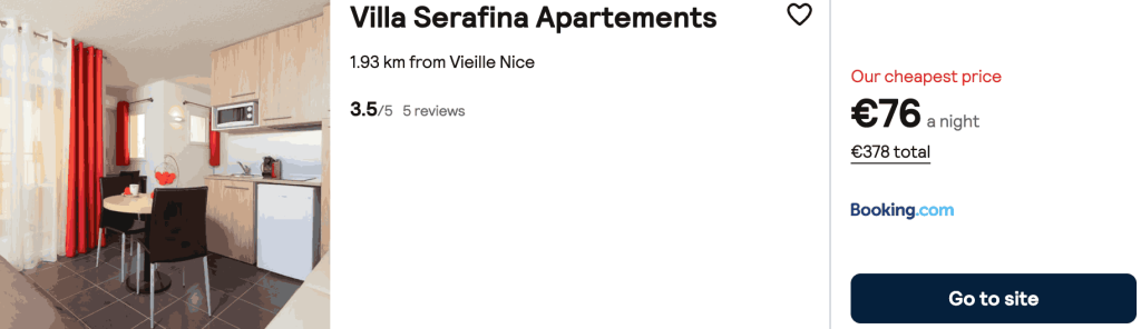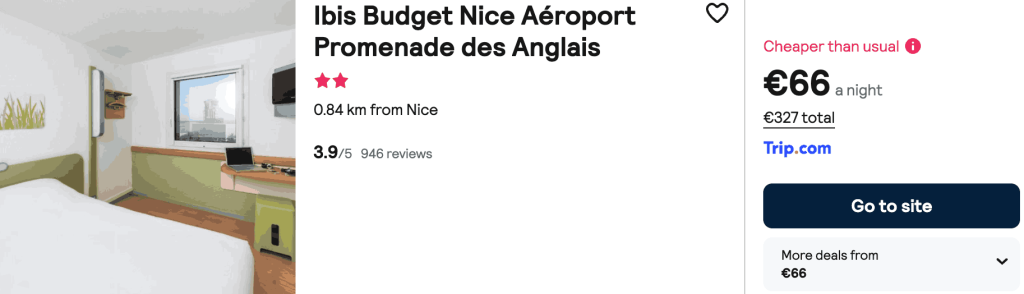 CAZARE 1: Ibis Budget Nice, Preț cameră dublă 327€, Preț persoană 163€, 16-21 Apr 2026 (5 nopți)