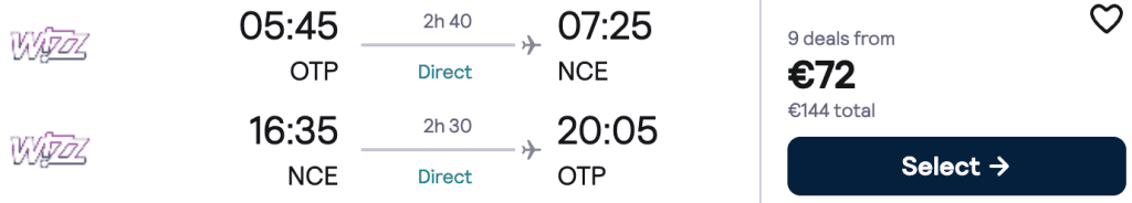 ZBOR: București -> Nisa, Preț dus-întors 72€/pers, 26-30 Mai 2026