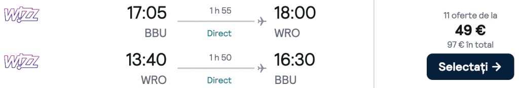 ZBOR: București -> Wroclaw, Preț dus-întors 49€/pers, 27 Dec-1 Ian 2026
