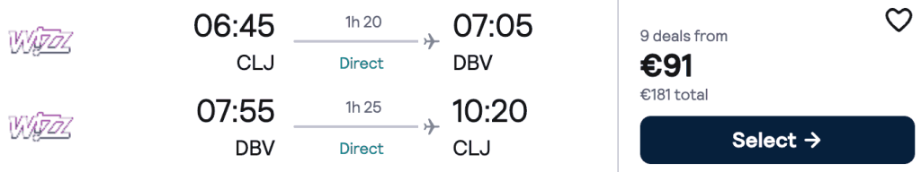 ZBOR: Cluj -> Dubrovnik, Preț dus-întors 91€/pers, 2-9 Iun 2026