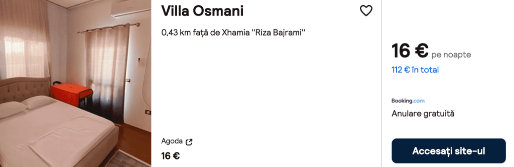 CAZARE 1: Villa Osmani, Preț cameră dublă 112€, Preț persoană 56€, 16-23 Mai 2025 (7 nopți)