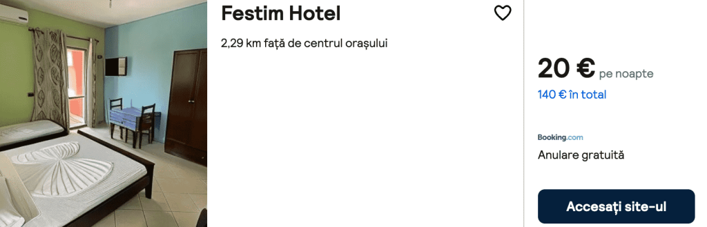 CAZARE 2: Festim Hotel, Preț cameră dublă 140€, Preț persoană 70€, 16-23 Mai 2025 (7 nopți)