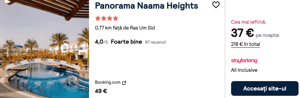 CAZARE 1 (ALL INCLUSIVE): Panorama Naama Heights, Preț cameră dublă 218€, Preț persoană 109€, 26 Nov-3 Dec 2025 (6 nopți)