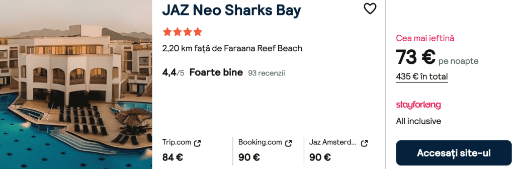 CAZARE 4 (ALL INCLUSIVE): Jaz Neo Sharks Bay, Preț cameră dublă 435€, Preț persoană 218€, 26 Nov-3 Dec 2025 (6 nopți)