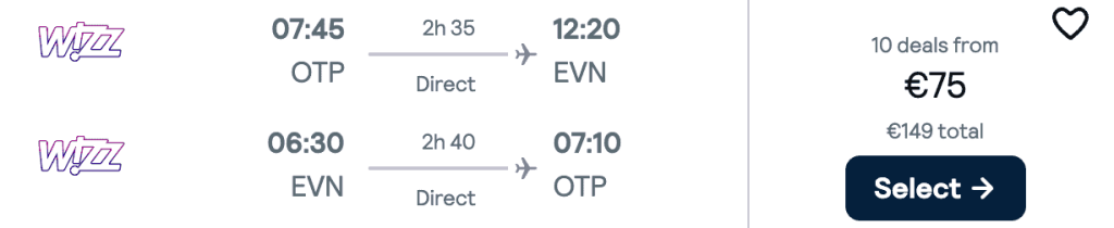 ZBOR: București -> Erevan, Preț dus-întors 74€/pers, 12-19 Feb 2026