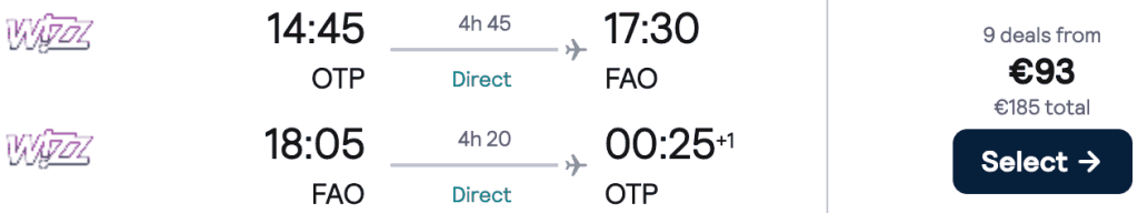ZBOR: București -> Faro, Preț dus-întors 93€/pers, 9-16 Mai 2026