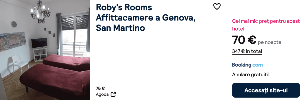CAZARE 2: Roby’s Rooms Affittacamere, Preț cameră dublă 347€, Preț persoană 174€, 5-10 Oct 2025 (5 nopți)